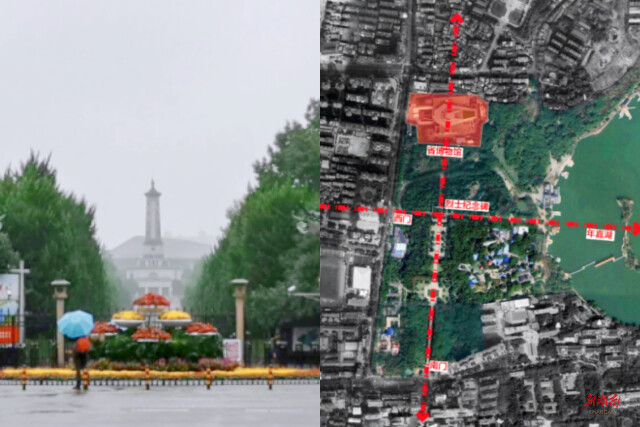 (左:烈士公園南門;右“省博物館在烈士公園的核心軸線上”)